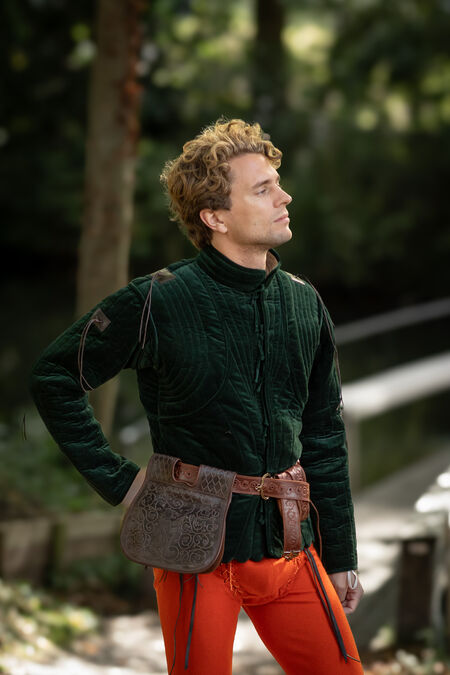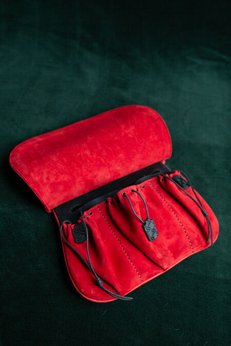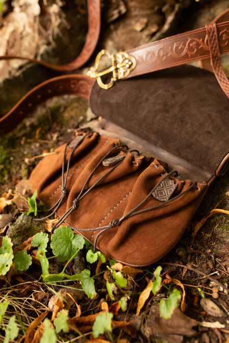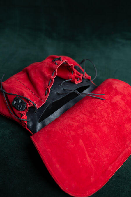 In modern clothing we are lucky to have pockets, but back in the Middle Ages the only way to keep your keys, coins and other valuable possessions handy were bags. Historical findings have shown us the astounding variety of shapes, materials and ways to wear those essential medieval accessories. This particular leather bag is inspired by the late medieval style and will fit many characters. It is a belt pouch, which means the belt goes through the loops at the top of the bag and secures it at your hips level approximately. Its other name is "kidney pouch" and they are usually associated with XIV-XV centuries. Both now and then, not only was it a convenient accessory but also a piece of fashion, a statement, and a way to stand out.