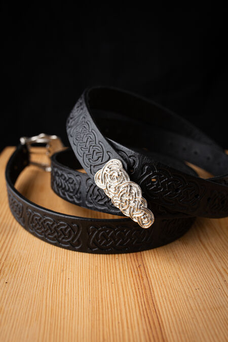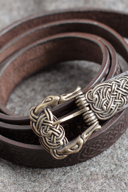 Good quality accessories are an essential part of your authentic outfit. This belt is made of 100% natural leather and is beautifully decorated with handmade casting accents and clasp along with traditional Old Norse patterns embossing. It features the same ornaments you can spot on the dress's trim. Choose the brass buckle for a golden tone or nickel-plated brass for a silvery hue.