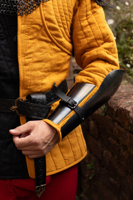 Bazubands, or long vambraces with integrated cops, have been one of the most popular pieces among sword-fighters both in modern days and historically. With late medieval white armor, the complexity and sophisticated shapes, as well as the engineering, were key factors in creating the best possible armor kit. However, when it comes to more straightforward and practical gear, simplicity and a minimum number of moving parts are always the cornerstones of functional usability and integrity. One piece is absolutely the minimum number possible, so one-piece vambraces with integrated elbow protection are a proven solution.