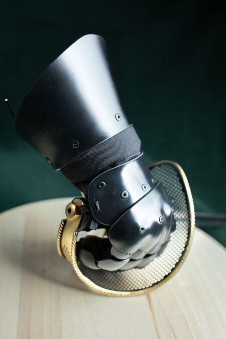 “Black Prince” plastic gauntlets are probably the pinnacle of recent gauntlet-building in HEMA. They are extremely lightweight, versatile, mobile, and comfortable. This level of mobility comes at a price - and yes, first it’s a price, and second, they will lose a level of protection competition to the “Black Knight” clamshells. It's a rare case when you can buy third-party items at ArmStreet, but they are here for a reason – HF armory produces one of the best gauntlets on the market! Both their clamshells and finger-gauntlets gained the trust of numerous HEMA fencers, including us.