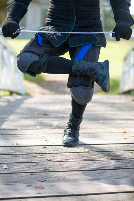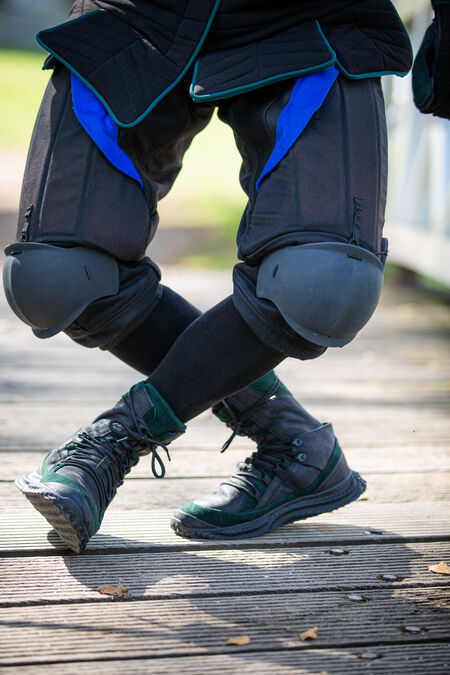 Excellent knee protection. You will need some sort of arming points on your pants to make use of these so don't buy if you're fencing in trackies and don't want to sew but any dedicated HEMA trousers should be fine. I was initially a little worried because my pants are Arcem pluderhosen (https://www.blackarmoury.com/en/pants/825-hema-pants-16th-century-800n-arcem.html) and I wasn't sure how compatible these would be. I'm pleased to announce that the knees work well -- not perfectly since the arming points on the pants are centered in theory rather than fact (they're made by SupFen...) so the knees sit a bit off-centre, but this doesn't matter much since the side wings are large enough to protect me fully anyway. If you also own a pair of these specific pluderhosen you may prefer to move the arming point strap to the actually centered position for. These are probably the best HEMA knee protectors -- they have large wings for side- and back-of-knee protection (an essential feature curiously omitted from many HEMA 'protectors'), they're thick and sturdy, if you set them up right they're comfy and stay in place (I had to experiment a little with the provided elastic cord to achieve this but this wasn't a big deal), and they look cool. Five stars.