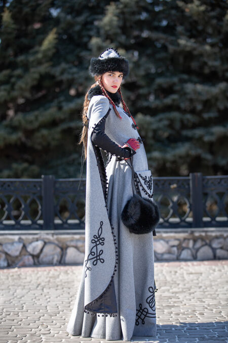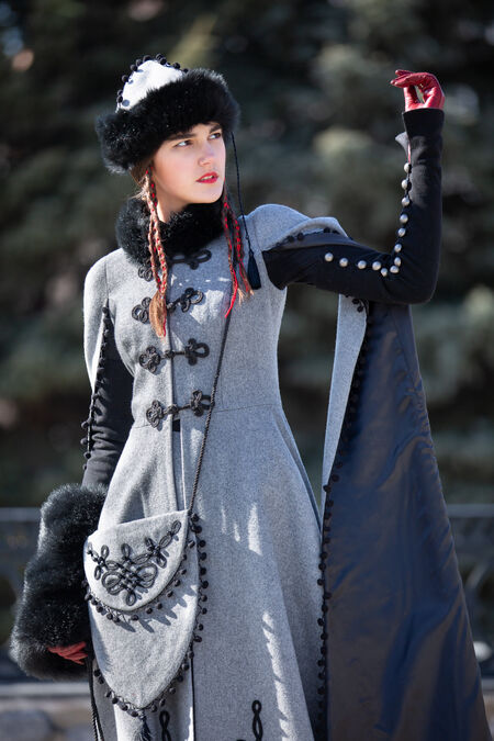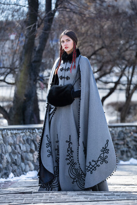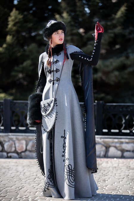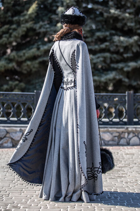 Sale “Queen of Shamakhan” Woolen Coat | Grey wool | Custom made