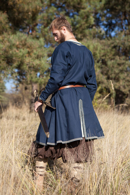 Discounted Cotton Viking tunic with North Europe style trim, ready to ship!