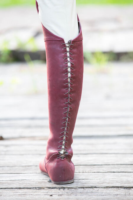 Though these shoes are built to offer you modern comfort, they are still flat medieval boots and need to be treated with care and respect to ensure they have a long life. We recommend storing them with boot shapers to keep them upright and shoe trees inside of them to keep their shape. After wearing these boots, ensure you brush off any excess mud (especially around the seams), and give them time to dry before wearing them again. When the leather is dirty or appears dry, make sure you take care of it with leather conditioner, and clean any mud away. If you treat them well, these boots will be your best friend!