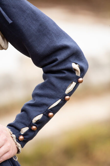 Traditionally, this German women's dress would have been worn with a chemise, as the bust is quite low. The square neckline and boned bodice work together to give you a dainty waist and a high bust, which looks fantastic with the voluminous skirt that drapes to the ground. The sleeves are fitted at the wrist, giving your arms a delicate look, and the buttons break up the fabric to create some contrast with your chemise or shirt underneath. Because the sleeves are detachable, it is up to you if you wear your kirtle with or without.