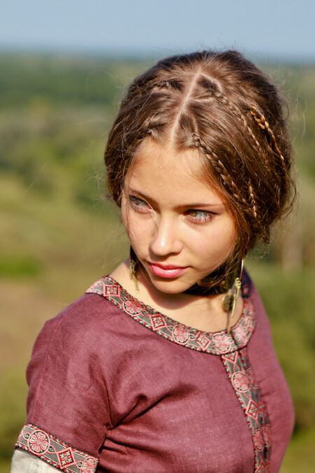 The skirt is hemmed with the trim as well as sleeves and neckline. Also the trim is used to decorate the lacing fastening at the fore part of a gown.