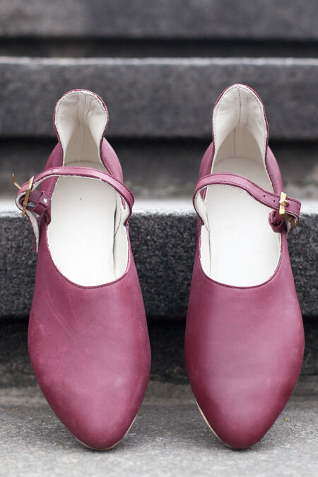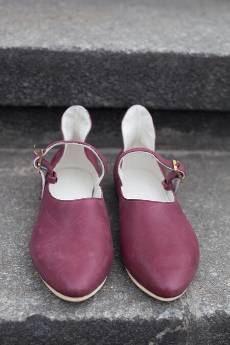 These shoes have modern soles that ensure a secure grip and are perfect for different types of activity - from usual walking to dancing. They consist of several layers: leather insole, leather fiber board, porous breathable orthopedic base and ribbed rubber outsole. This model cannot be made with authentic soles, but one can find many other historically accurate models with leather soles in our store.