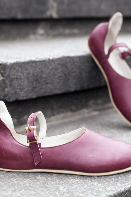 These shoes have modern soles that ensure a secure grip and are perfect for different types of activity - from usual walking to dancing. They consist of several layers: leather insole, leather fiber board, porous breathable orthopedic base and ribbed rubber outsole. This model cannot be made with authentic soles, but one can find many other historically accurate models with leather soles in our store.