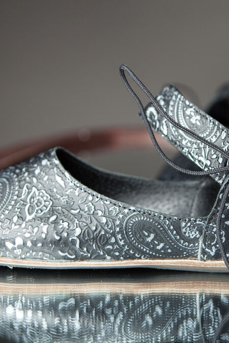These shoes have modern soles that ensure a secure grip and are perfect for different types of activity - from usual walking to dancing. They consist of several layers: leather insole, leather fiber board, porous breathable orthopedic base and ribbed rubber outsole. This model cannot be made with authentic soles, but one can find many other historically accurate models with leather soles in our store.