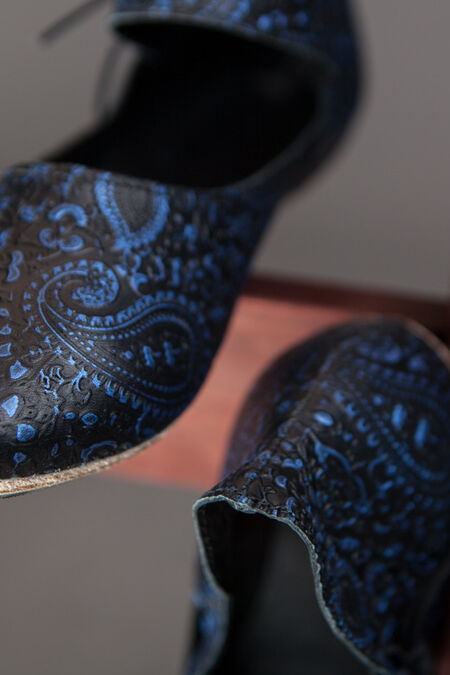 Sale Women’s Lightweight Embossed Leather Shoes | Blue on Black | Size EU-36 (US-5)