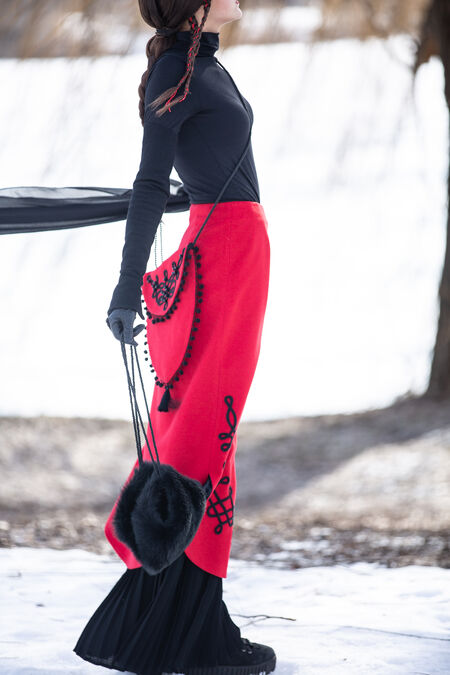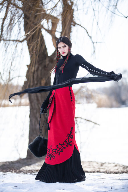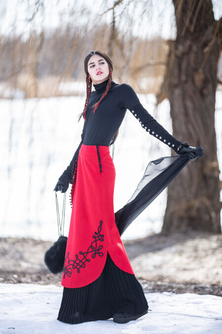 If you’re looking to make a statement either in your medieval or modern life, this is the skirt for you. Inspired by historical design sensibilities, we have taken it a little bit high-fashion and developed a new garment completely from our imaginations, not available anywhere else. Our years of historical design have taught us a lot of things about modern fashion as well, and we were excited to apply all of this to a garment that could exist in either time! Stylistically, this skirt was inspired by the spirit of the 19th to early 20th-century fashion.