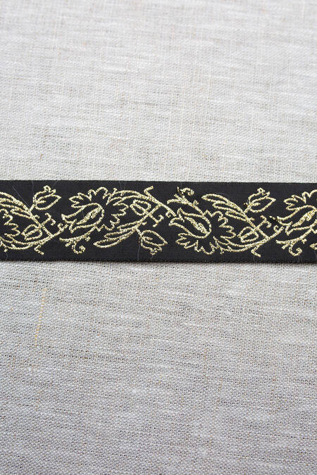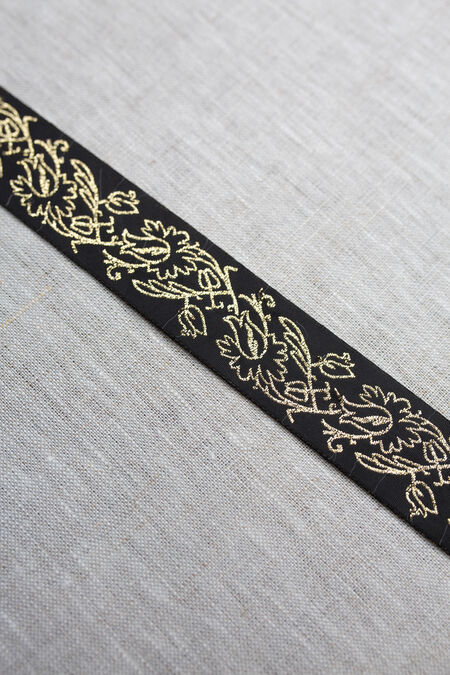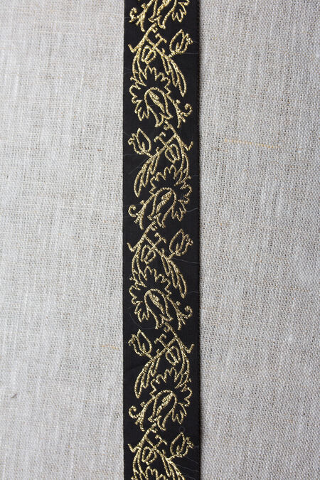 This trim feautures delicate golden thorn ornaments over the black background – a delicate contrasting finishing touch suitable for various DIY medieval costume projects.