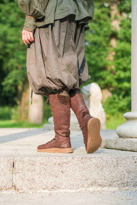 The amount of time members of the ArmStreet team spent with a sword in their hand probably measures in hundreds of thousands. We've been participating in and winning sword-fighting competitions from ancient times live steel sword-fighting to buhurts, armored and blossfechten, HEMA and LARP, and many things in between. So, the question of proper gear has always been on the table, and we have always wanted to make a perfect combination of reasonably looking boots for events and modern-level technology to increase your efficiency and comfort. Though modern sports like Olympic fencing have already developed an approach to special footwear, it is only suitable for the ideal surface of the fencing piste, while in real life many of us run, jump, and fight on surfaces that are far from being ideal. Moreover, you always have a chance to jump from the sandy road to the wet grass or muddy slope, and you need footwear that will help you to perform.