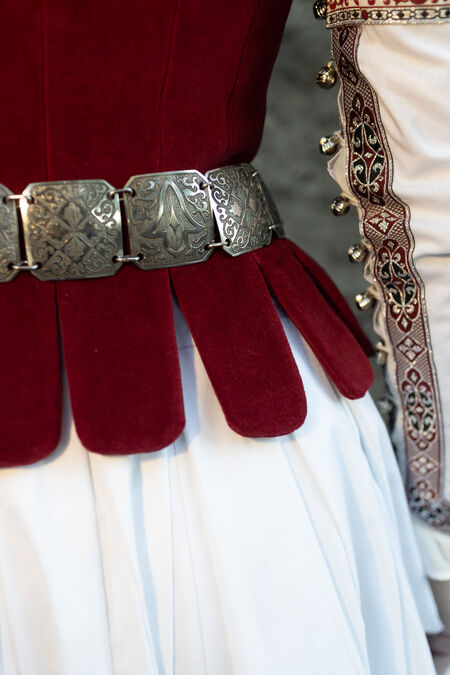 The low collar aristocratically opens the neck and the V-shaped front lacing allows to control bodice tightness. Coquettish quilted “wings” sleeves and tassets with half-round scallops are attributed to Baroque costume. Bodice is made of high quality Italian velvet and can be used with both original “Lost Princess” or “Found Princess” dress as well as with any other slim-fit period dress.