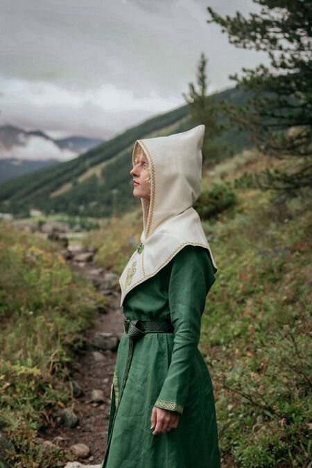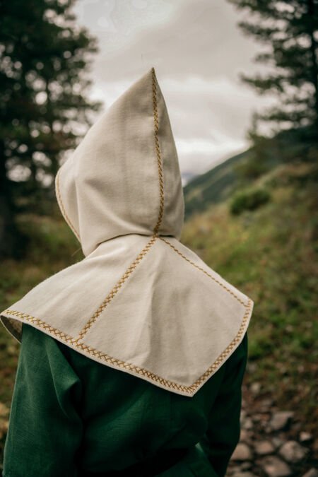 Hood is one of the most versatile and practical pieces of medieval and Middle Ages clothes, and this pattern is the best we have in terms of relative simplicity and excellent functionality at the same time. This hood serves so many goals - from protection from wind and elements to hiding your face in a risky mission. It also plays an important role as an element of your outfit, changing the style and the level of authenticity when combined with the simplest basic clothing. The white hood is even more than that: a perfect combination of a deceptive appearance and a hidden nature.