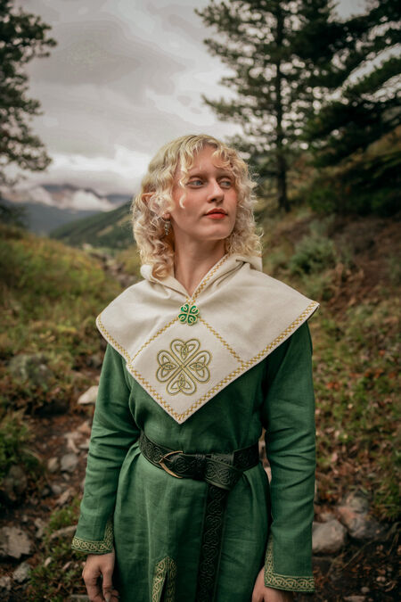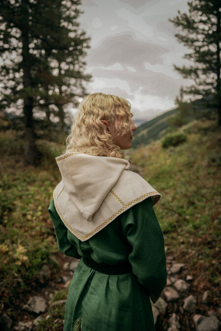 The white merino wool, nice organic linen-poplin blend lining, and handmade embroidery make this hood special. And it is special like all our "limited edition" items, made from one-of-a-kind, limited-quantity fabric. We make clothing, but it is your inspiration that takes it to the next step, turning it into a piece of garb to match your unique character. So go for it and enjoy the best costuming experience money can offer.