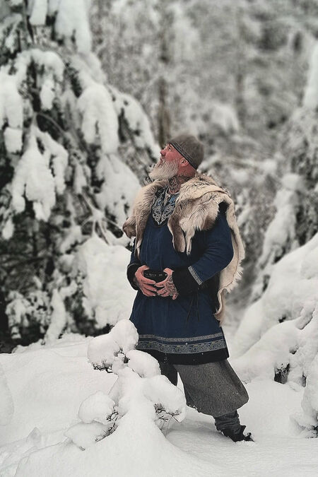 Like many ancient people, the Vikings also saw clothes as having particular meaning. They considered the human's throat a crucial part of the body because they believed it was where the soul leaves when a person passes away. Hence, the Vikings paid extra attention to decorating the neck opening of their clothing. Following this tradition, we adorned the neckline of this tunic with hand embroidery. This type of finishing replicates the techniques used in the past, particularly the Norman embroidery style. Although it requires a lot of effort, the result is impressive and authentic – the mythical creatures guard your neck both at the front and back. The embroidered dragons at the neckline complement the pattern on the trim. The entire neckline and edge of the calves are hand-finished with a thick thread that twists around the rope in tiny stitches, giving evil spirits no chance to get close to you.