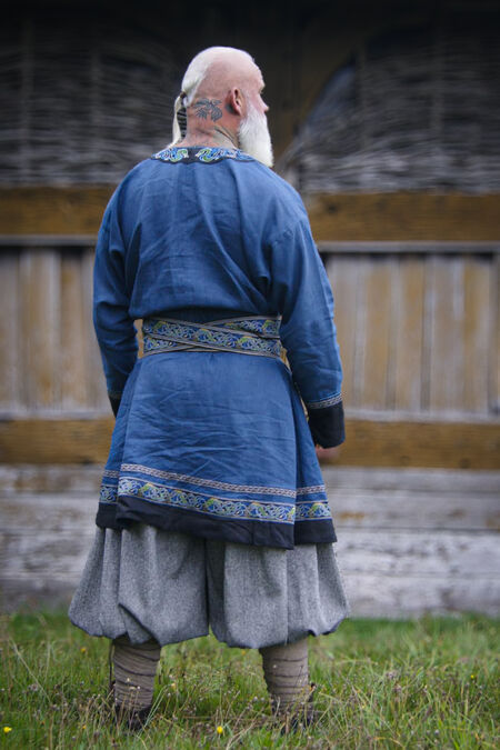 Our Viking collection keeps growing, featuring more genuine style clothing from the Early Middle Ages. This exclusive embroidered tunic is made of high-quality natural linen. The tunic's sleeves, hem, and neck opening are adorned with contrasting linen, trim and tiny details that all together create a multidimensional and complex textural and visual masterpiece. The decorative pattern features dragons, which are common in Scandinavian myths. This unique trim was specially designed and made exclusively for our Viking collection. The tunic's design is historically accurate and is based on discoveries made during excavations in Birka, Sweden.