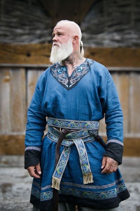 But let's imagine a different scenario: there are no raids on the horizon, and you have time to stroll through your settlement's streets. How can you transform your everyday attire into something special while still keeping it suitable for the time and place? Well, here's where a belt comes in handy. With just two wraps around your waist and a knot, your typical T-shaped tunic can take on a more elegant and ceremonial appearance. You can wear it as a belt to improve the fit of your traditional tunic or use it as a striking accessory during your Viking adventures – the choice is yours.