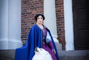 All the seams are well-finished on the cape. The trim, wool, and velvet are attached in a great way to each other so that you can enjoy the care our experienced tailors produce our items with. This cloak along with a contrasting chaperone and accessories creates a marvelous look for a Medieval photoshoot or festival where you can be a countess walking around your property without the fear to get cold.