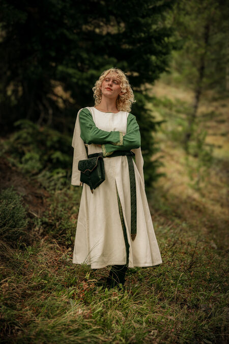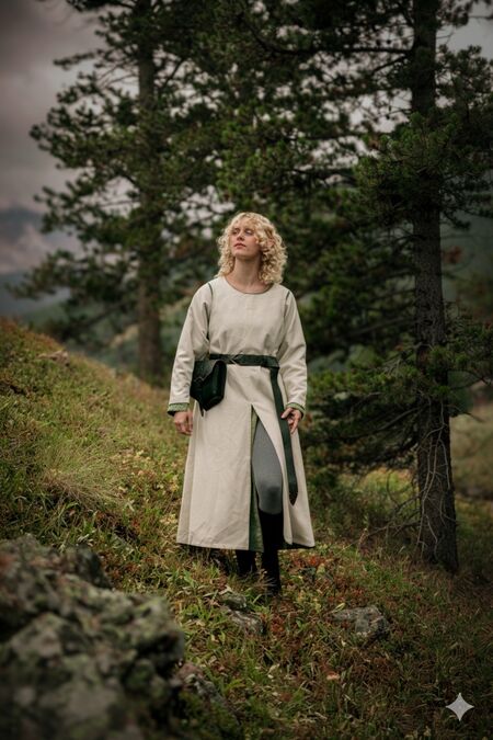 A surcoat is a very typical medieval garment, usually a second (or third) layer in your outfit. A surcoat was traditionally worn over the inner layer of clothing (and also over armor) and was an analog of the modern sweater — a perfect addition to your travelling outfit and a versatile part of it.